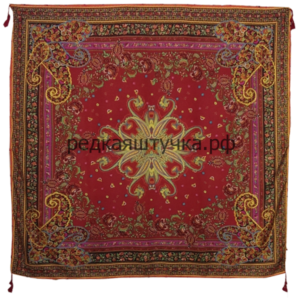 По всем четырем сторонам платка - кисточки длиной 3-4 см.